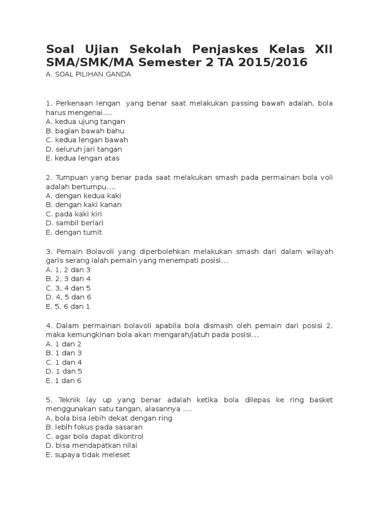 20200212 semoga soal pts pjok sd kelas read more Kumpulan contoh soal uts smpmts kelas 8 semester 2genap kurikulum 2013 ini bisa di unduh secara langsung. Soal penilaian tengah semester pjok smp mts semester 1 kurikulum 2013 ini disusun berdasarkan silabus smp mts kurikulum 2013 revisi terbaru. 19/8/2021 · soal & jawaban pts pjok sd/mi k13 2021/2022 semua kelas, download soal uts penjaskes kelas i, ii, iii, iv, v, vi semester 1 kurikulum 2013 terbaru. Kumpulan soal ujian sekolah us kelas 6 sdmi terbaru tahun ajaran 20172018 dan file download soal us pkn bahasa indonesia ips ipa matematika dan bahasa inggris.
